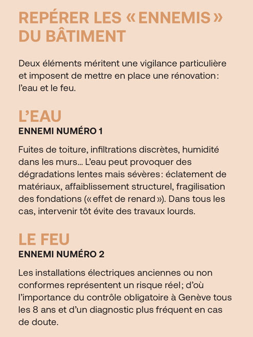Parfois, un composant du bâti cède soudain : une fuite, une panne, une dégradation visible. Plus souvent, ce sont de petits signes, matériels ou psychologiques, qui s’accumulent : un confort thermique qui se dégrade, une salle de bain vieillissante, une installation électrique datée ou simplement la perte de plaisir à habiter son logement. Pour Éric Maria, architecte et directeur d’EMA Architectes Associés à Genève, une rénovation ne naît jamais d’un seul facteur. « Il y a toujours deux niveaux à considérer : l’obligation technique et réglementaire et l’évolution du confort de vie », explique-t-il.