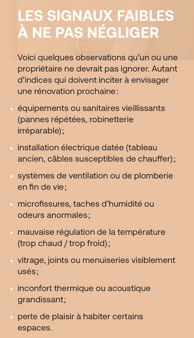 Cette vision globale permet d’éviter les incohérences coûteuses : refaire une salle de bain sans toucher à la colonne technique, remplacer des fenêtres avant d’améliorer la façade ou enchaîner des étapes mal coordonnées. Dans le doute, mieux vaut anticiper les mises à niveau techniques plutôt que d’y être contraint dans l’urgence. Pour Éric Maria, « une rénovation n’est jamais un simple “moment”. C’est l’aboutissement d’une observation continue, d’un entretien attentif et d’une décision réfléchie ».